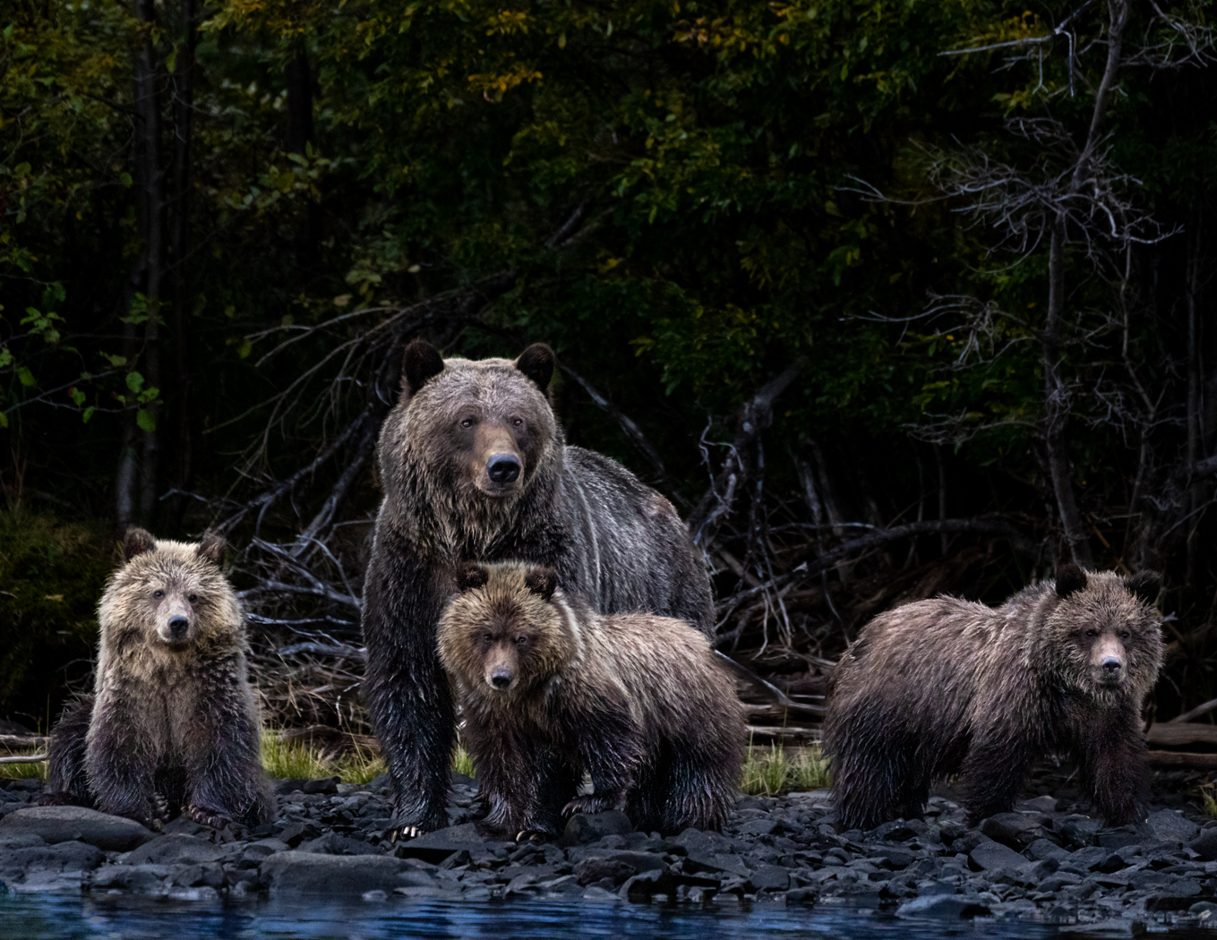 Top - Zoology Garnet Rich  Grizzly Bear Mother and 3 Cubs
